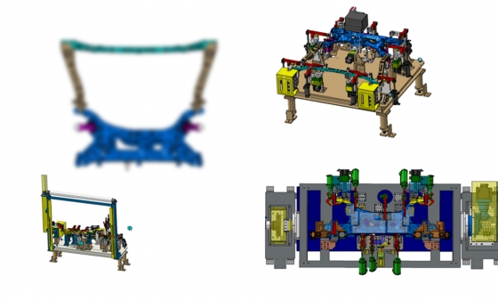 자동차 앞부분 구조물의 조립체를 자동화 설비로 용접하는 공정으로 FRT ASSY 용접라인과 샤시 지그를 제작하였습니다. 이 공정은 차량 충돌 안전성에 매우 중요한 부위기 때문에 정밀도와 용접 품질이 핵심입니다. 고정밀 조립을 위한 지그 설계와 용접 자동화 공정을 통해 부품 정합성 향상 및 공정 표준화를 지원하였습니다.
